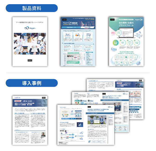 データ統合活用基盤「Mµgen(ミュージェン)」製品資料や生成AIサービス資料、導入効果を上げているお客様導入事例をダウンロードいただけます。ぜひダウンロードしてご覧ください。